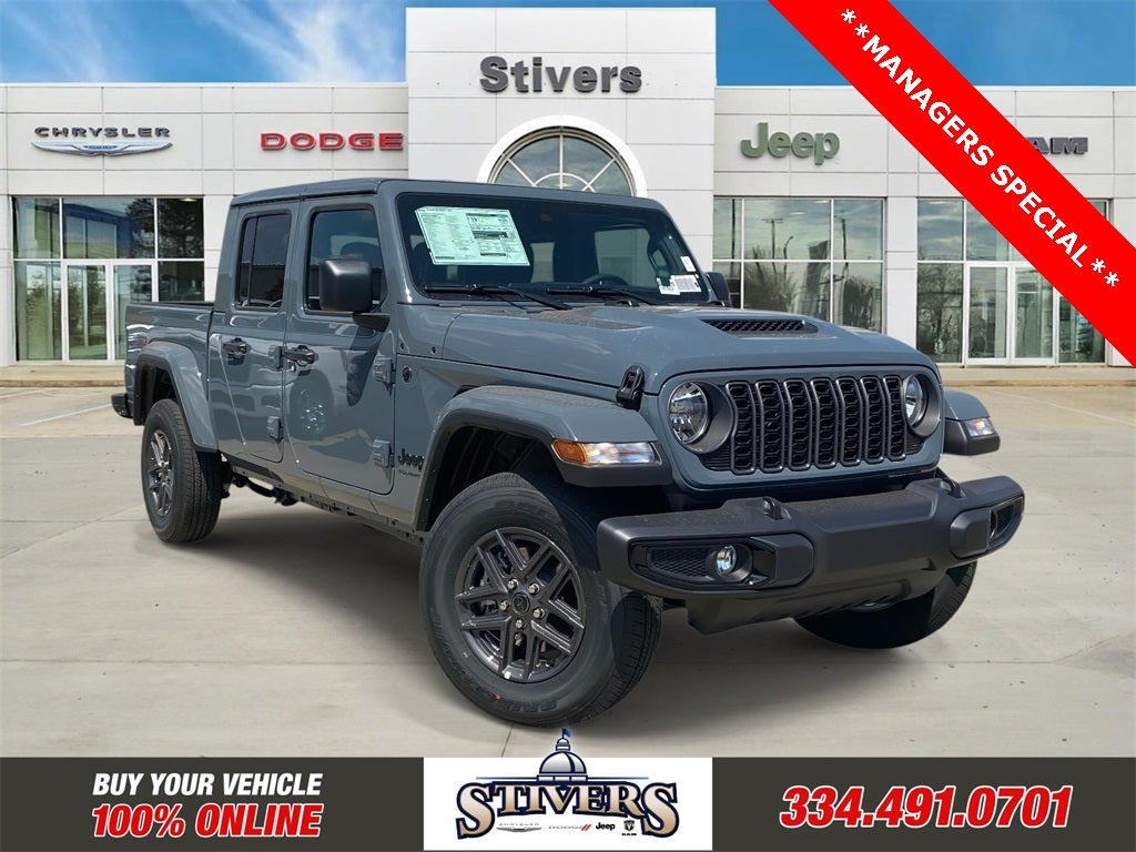 Contact Stivers Chrysler Dodge Jeep Ram for your Chrysler automotive needs! We have the latest Chrysler models. Search our New Chrysler inventory and contact our internet sales department for current specials or to schedule a test drive. Located in Prattville, AL, our internet sales team provides excellent savings to customers in Prattville, Montgomery, Clanton , and Opelika areas. Contact our dealership online for an internet quote.Contact Stivers Chrysler Dodge Jeep Ram about this New 2025 Chrysler Gladiator GLADIATOR SPORT S 4X4 - Stock #58925, VIN #1C6PJTAG7SL540995
