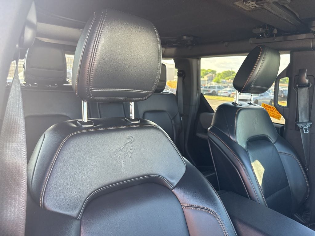 Inside, the Bronco offers a functional yet refined cabin with intuitive controls and smart technology. Features include a user-friendly infotainment system with Apple CarPlay® and Android Auto™ compatibility, Bluetooth® connectivity, and convenient touches like remote keyless entry, illuminated entry, and a built-in compass. Comfort and convenience are enhanced with heated door mirrors and thoughtful storage throughout the cabin.