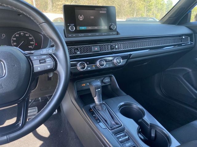 Step inside the Civic Sport and you'll be greeted by a spacious and well-appointed cabin. The cloth/leatherette seating surfaces offer both style and comfort, while the leather-wrapped steering wheel and shift knob add a touch of sophistication. The intuitive infotainment system, complete with Apple CarPlay and Android Auto integration, keeps you connected and entertained on the go.